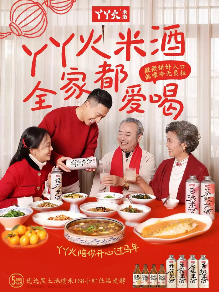 在文化端,丫丫火深挖米酒作為中國(guó)國(guó)酒始祖的七千年文化底蘊(yùn),并將其與當(dāng)代家庭生活進(jìn)行創(chuàng)新連接。品牌不再僅僅強(qiáng)調(diào)“解辣”,而是著力塑造“一家人不喝兩種酒”的餐桌共識(shí)。